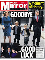Tough decision for the picture editors today, with some quite brilliant portraits of Gordon Brown. The back of his head and the hunched shoulders work well in The Guardian and The Sun, although the door number gets lost a bit on the Sun's version. Simple and effective in The Guardian. The Independent and the FT use similar pictures but the Indie, even with the missing chin, really shows the strain. Why the background in the FT? Then there is the Mirror - strain and defiance. Excellent photographs that sum up the moment. The Express, on the other hand, chooses to splutter on with a shabby, sordid stitch-up-type headline. The Daily Star quite remarkably opts for three dull headshots of politicians in suits (when was the last time that happened?). Its headline though sums up the whole affair perfectly. Memorable front pages. Thanks to The Guardian for drawing them all together.