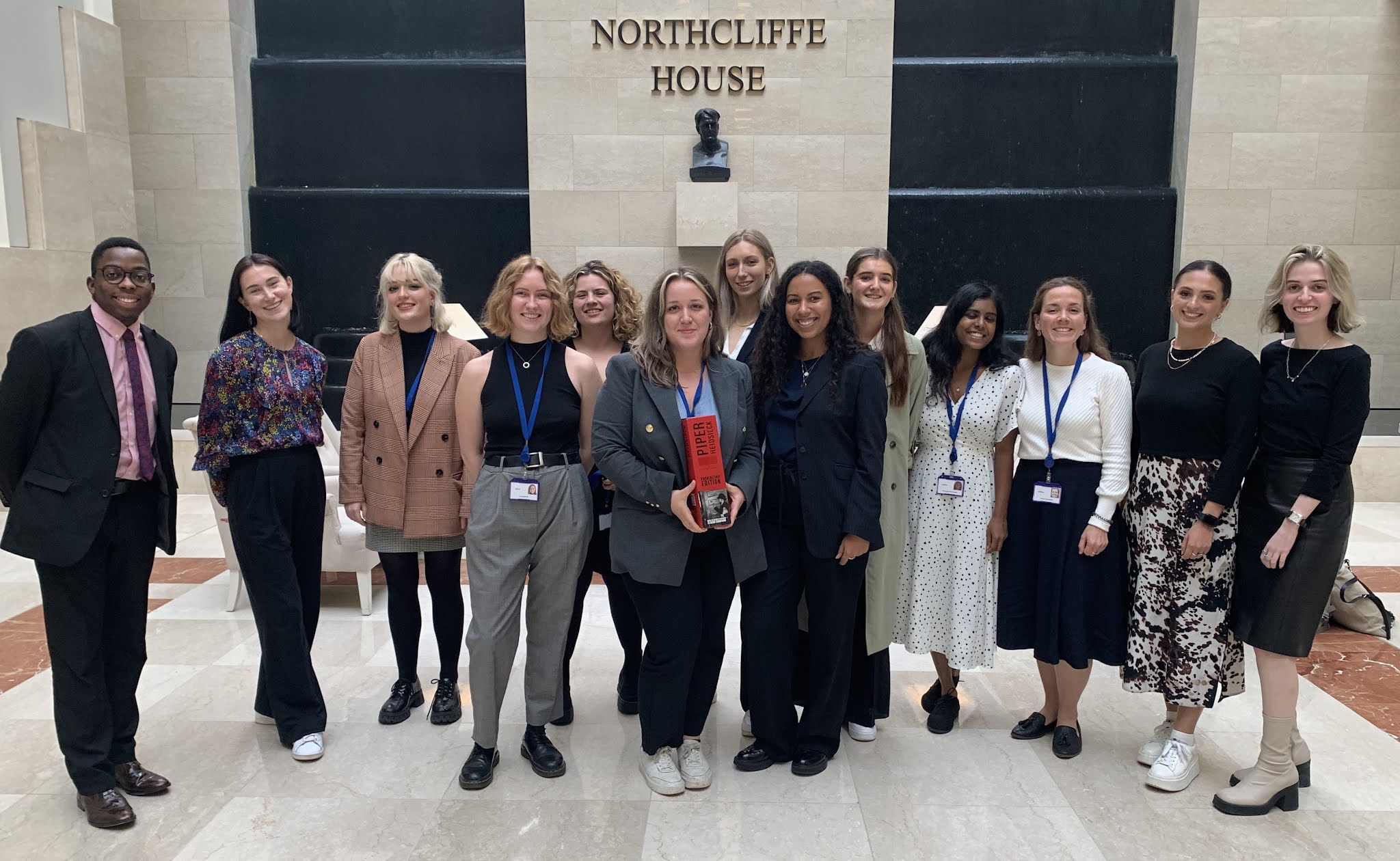 I said farewell to the Daily Mail reporting trainees today. They now go to the Mail newsrooms in London, Dublin and, Glasgow on placement. They are a bright and likeable bunch. I wish them well and look forward to their success stories. The trainee subs have another week to go. The reporting trainees had some first class sessions this week. They enjoyed talks by Susie Coen from the investigations team, business correspondent Tom Witherow, showbiz reporter Eleanor Sharples and assistant editor (politics) Simon Walters. On Wednesday editor Geordie Greig talked about his vision, offered advice, inspired them and took questions in his office. Today they had safety awareness training from Charlie McGrath and Grant Wootton. The subs laid out Mail pages with training and guidance from Mike Brough and did long-form journalism with Fiona Webster. Last night we had farewell drinks in the Greyhound. We finished the week, as always, with the newsquiz. This week’s winner was Imogen Horton with 20, ahead of Clara Gaspar on 18.5. The top scoring reporter over the three weeks was Niamh Lynch who won the Champagne.